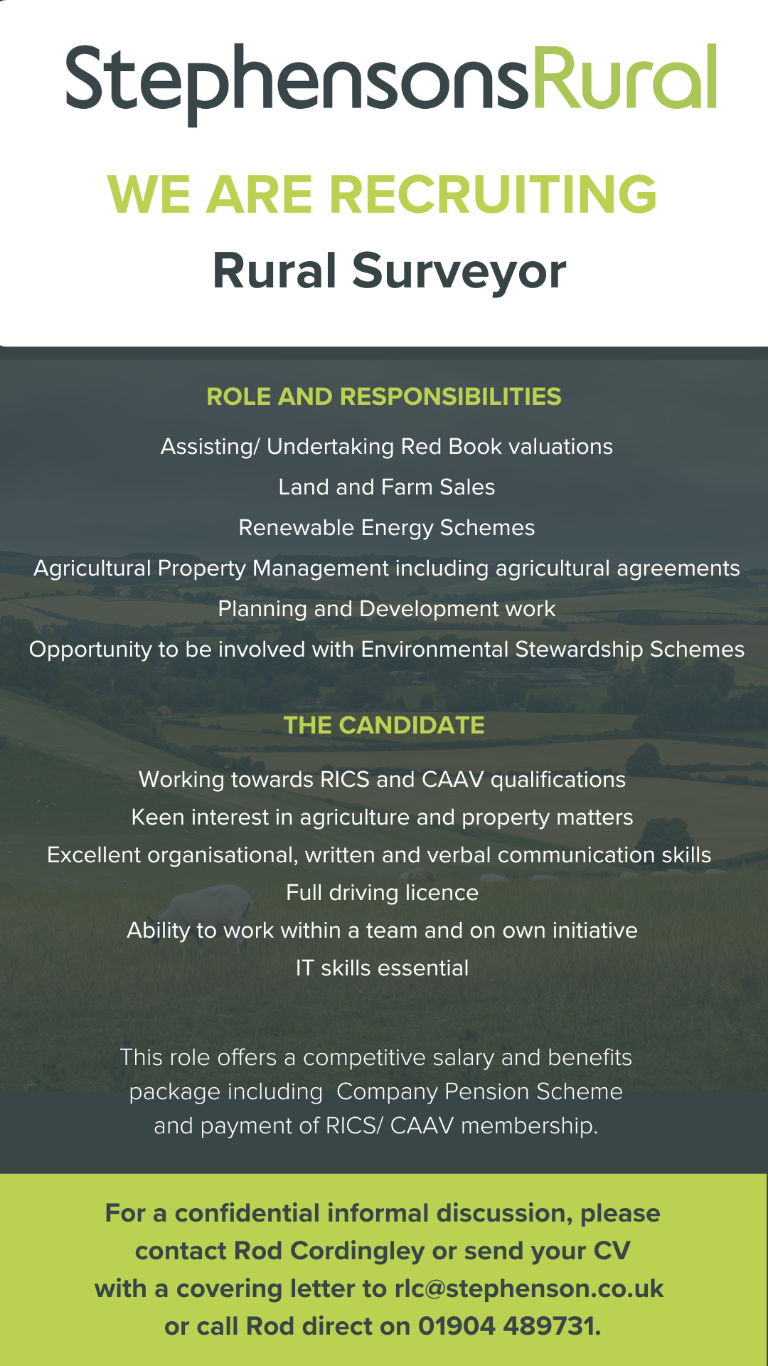 An exciting opportunity for someone to progress their career as a Rural Surveyor in our friendly agricultural team at Murton, York.