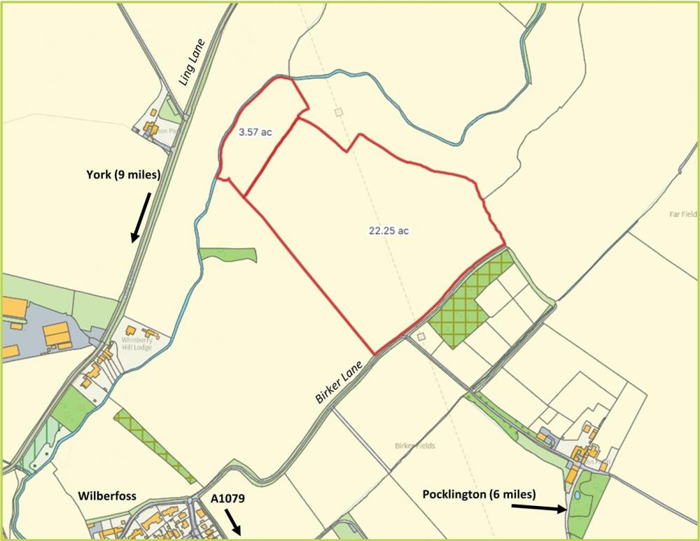 The land is located to the north-east of the village of Wilberfoss from Birker Lane. The land is less than 1 mile from the A1079 and is within easy reach of York which is just 9 miles to the west and Pocklington which is 6 miles to the south-east.