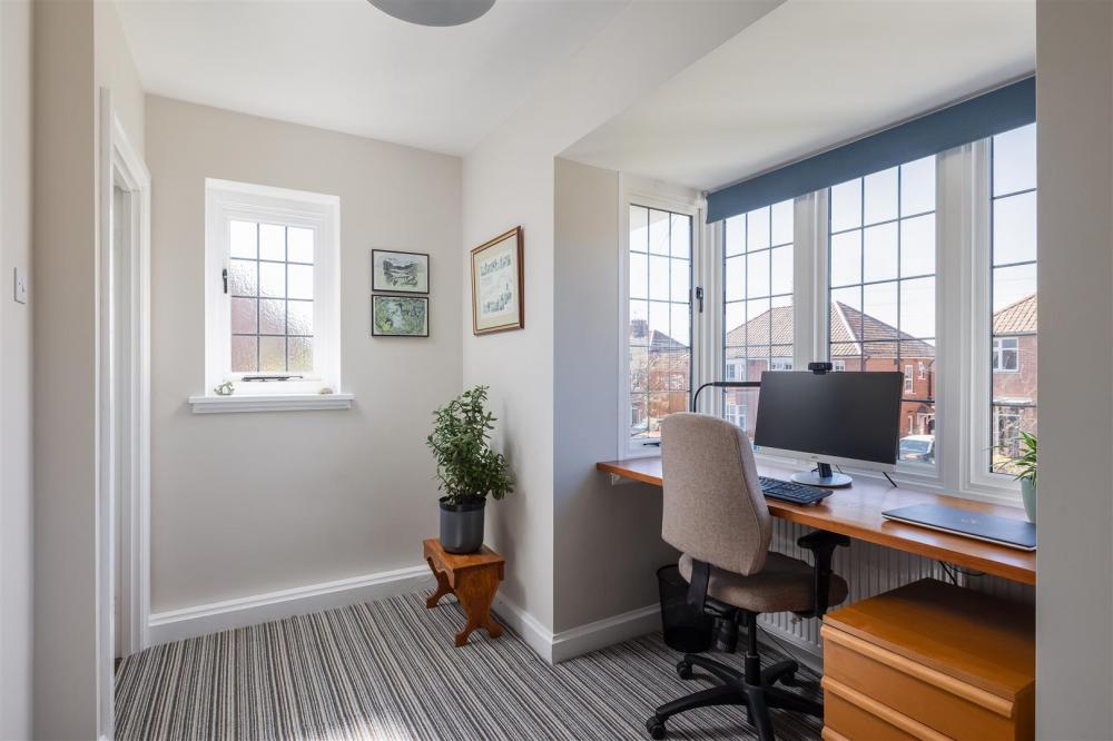 This single bedroom is presently used as an office. Double aspect. Ideal gas fired central heating boiler and radiator.