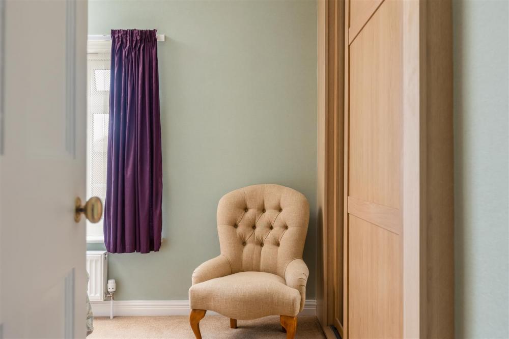 Built in wardrobe with sliding doors including mirror door, radiator, Upvc window, further built in cupboard with sliding door.
