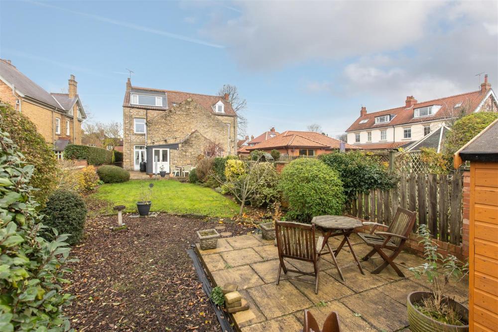 Enclosed front garden with stone retaining wall with railings above, gated pathway leads to the front door, gated side access leads attractive and good sized south facing rear garden with large patio area, laid lawn, established shrubs and trees, also a secondary patio area, garden shed, fencing to all the boundaries.