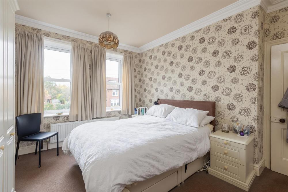With two double glazed windows to the front elevation, fitted wardrobes, dressing table and drawer compartments, coving to ceiling and central heating radiator.