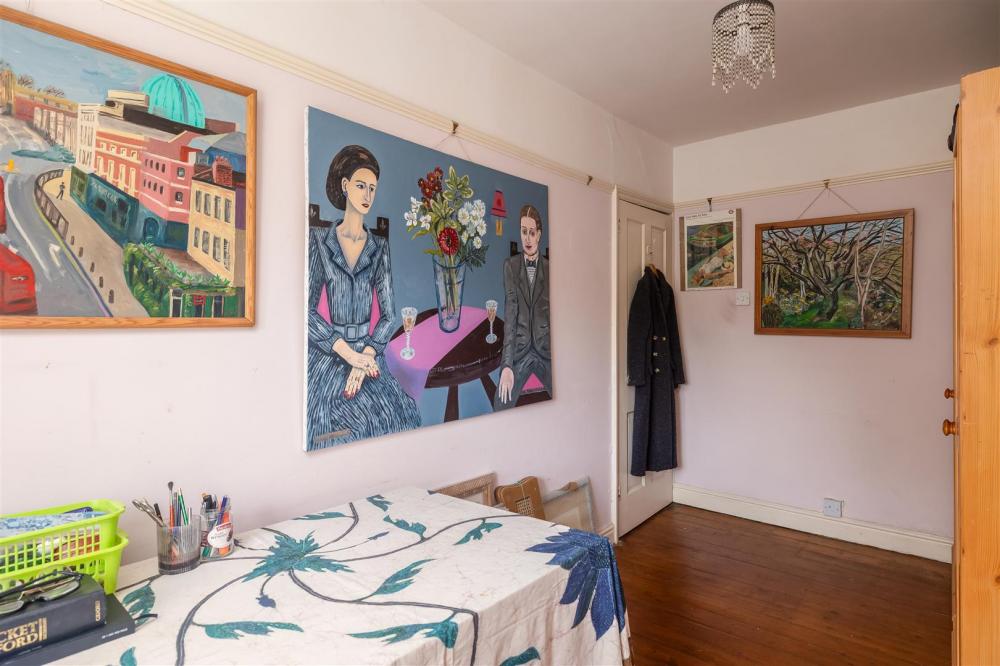 Front aspect timber frame single glazed window; cast iron open fireplace, tiled with timber surround; picture rail and double radiator.