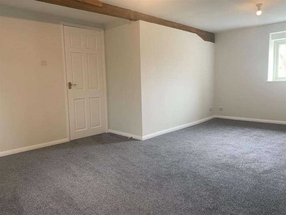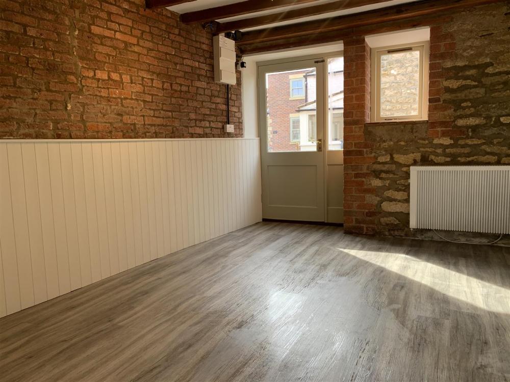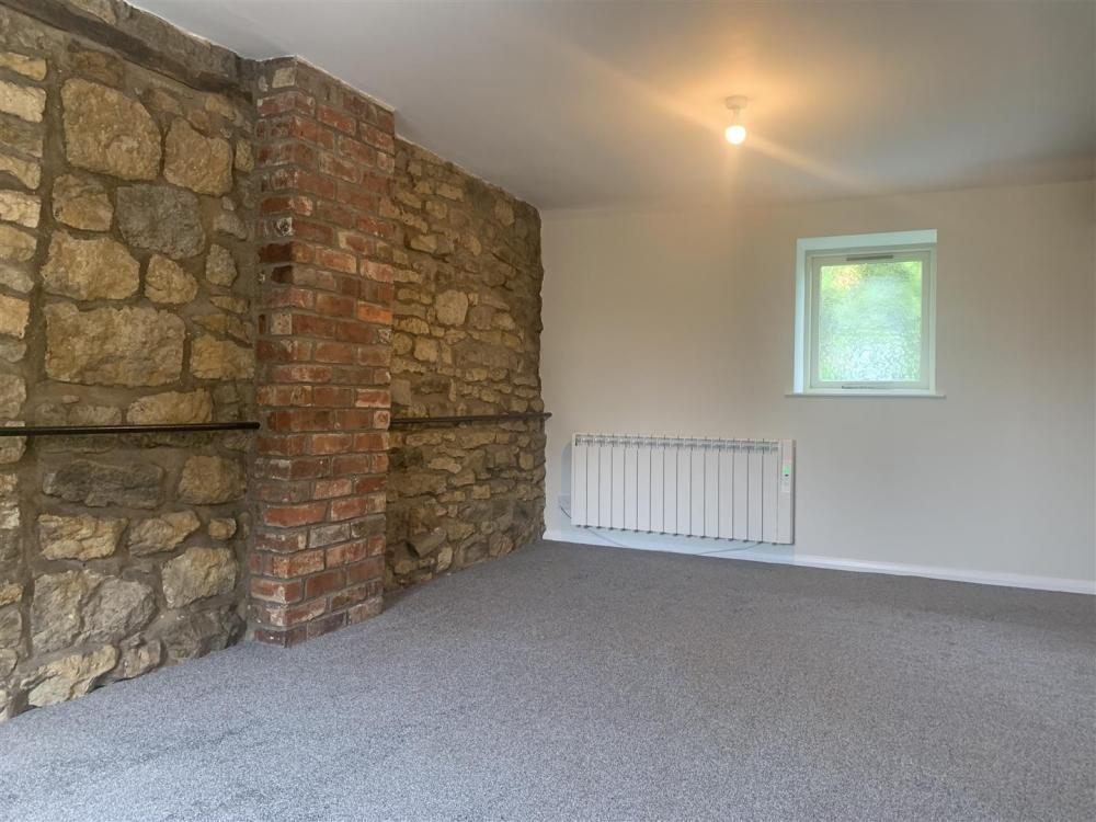 Brick feature fireplace, TV point, timber framed double-glazed casement windows to the front, door to the side, part exposed stone and brick walls and electric radiators.