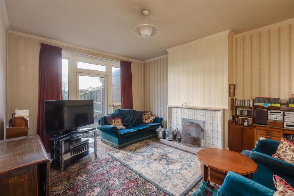 uPVC double glazed bay window to the front, open fireplace with tiled surround, mantelpiece and hearth, double radiator, decorative cornicing.