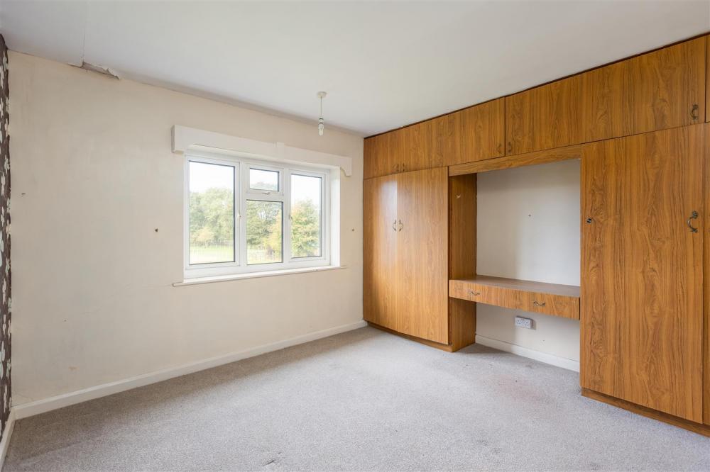 Rear aspect uPVC double glazed bay window, fitted wardrobes, dressing table and cupboard, radiator and radiator cover.