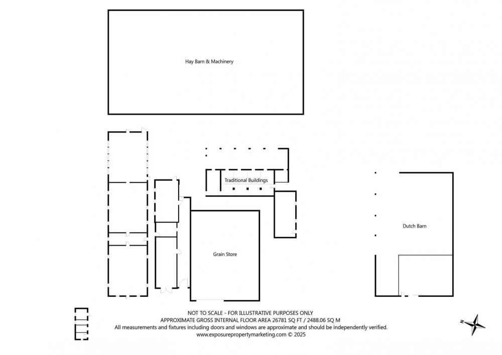 The buildings are located to the east of the dwelling based around a large yard area. The buildings comprise over 25,000 square feet and a range of structures as outlined below: