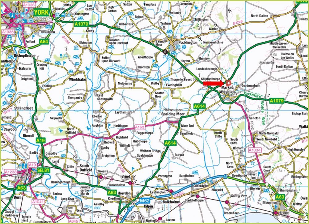 Take the A1079 from York to Hull. After approximately 15 miles, take the first left at the roundabout at Shiptonthorpe services. Follow Towthorpe Lane (A614) for about 1 mile; follow the road straight on at Londesborough Roundabout and Woodsyde Farm will be immediately on your right. A StephensonsRural sale board will identify the main farm access.